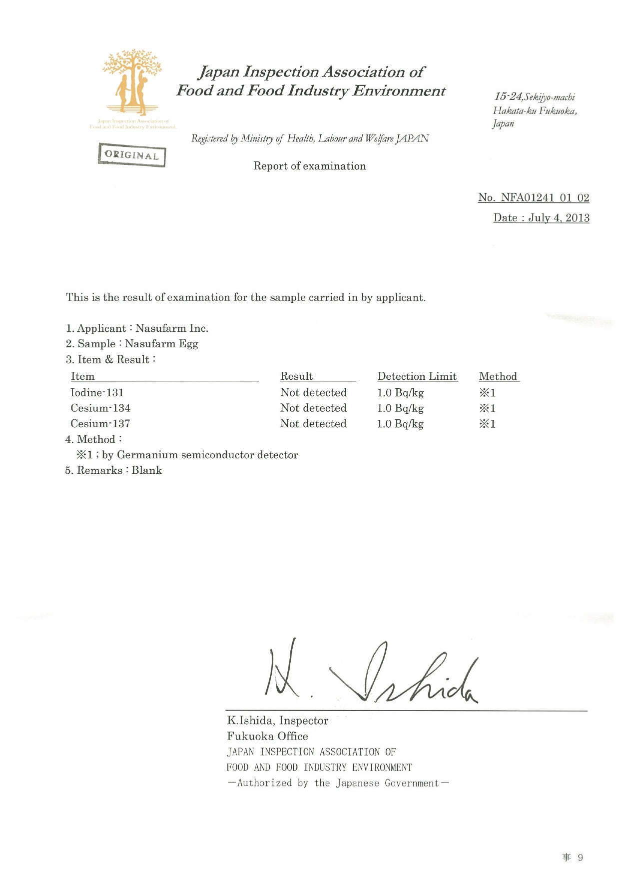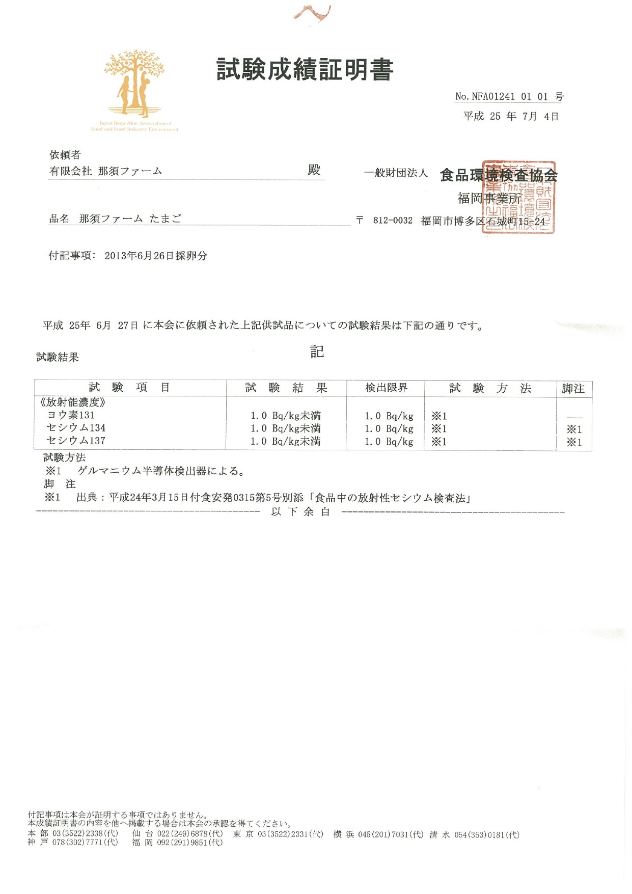 TOP>たまご研究室>〈たまご〉 放射能検査レポート#5 2013年7月